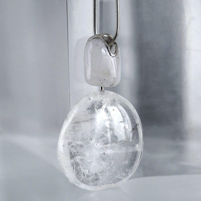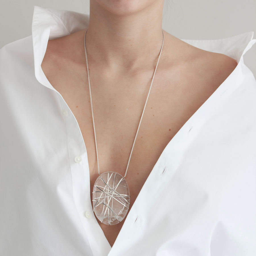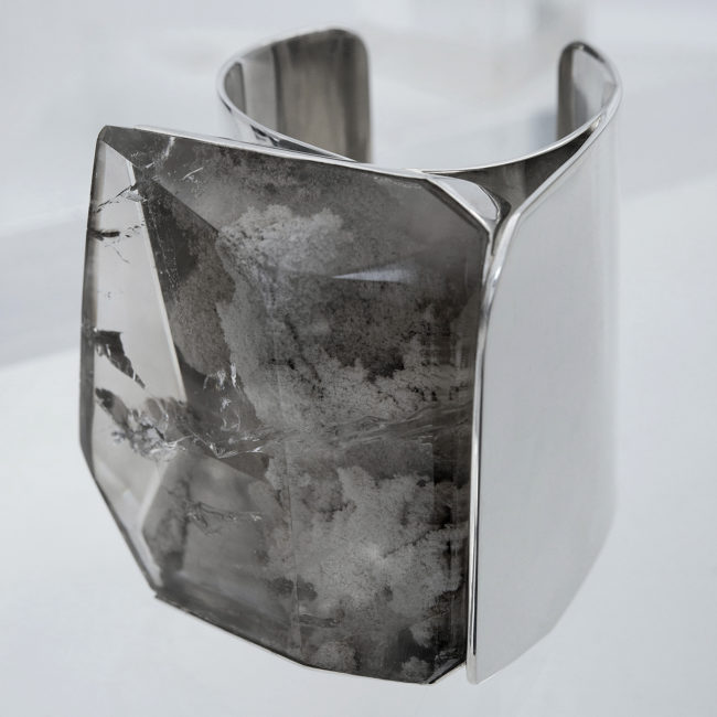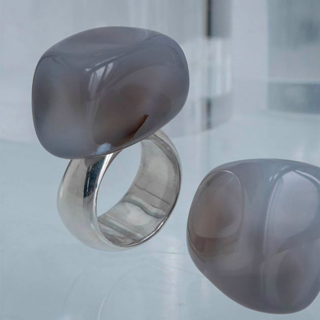 Cristal de roche, agate, améthyste… Ces pierres brutes inspirent les créations de Nelly Guyot. Rehaussées par l’argent, elles révèlent ainsi leur transparence presque liquide telle une invitation à la sérénité. De véritables sculptures modernes à porter.